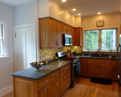 Our neighbors asked us to help rethink their everyday entry sequence, and add a screen porch. They also decided it was time to refresh their kitchen. By building a new desk into their music room, we were able to transform an underused corner into a new breakfast nook and expand the work space of their kitchen without moving any plumbing. Their new kitchen is both familiar and newly invigorating. The screen porch balances a simpler exterior aesthetic with the refined detailing of the historic home.